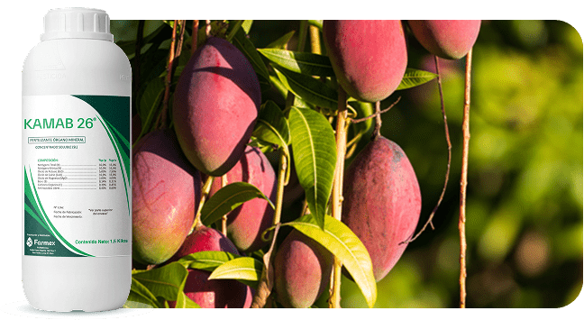 KAMAB 26® es una formulación equilibrada elaborada con insumos de grado alimenticio que tiene como objetivo la calidad y condición de fruta por su composición saturada y equilibrada de calcio, magnesio y potasio.